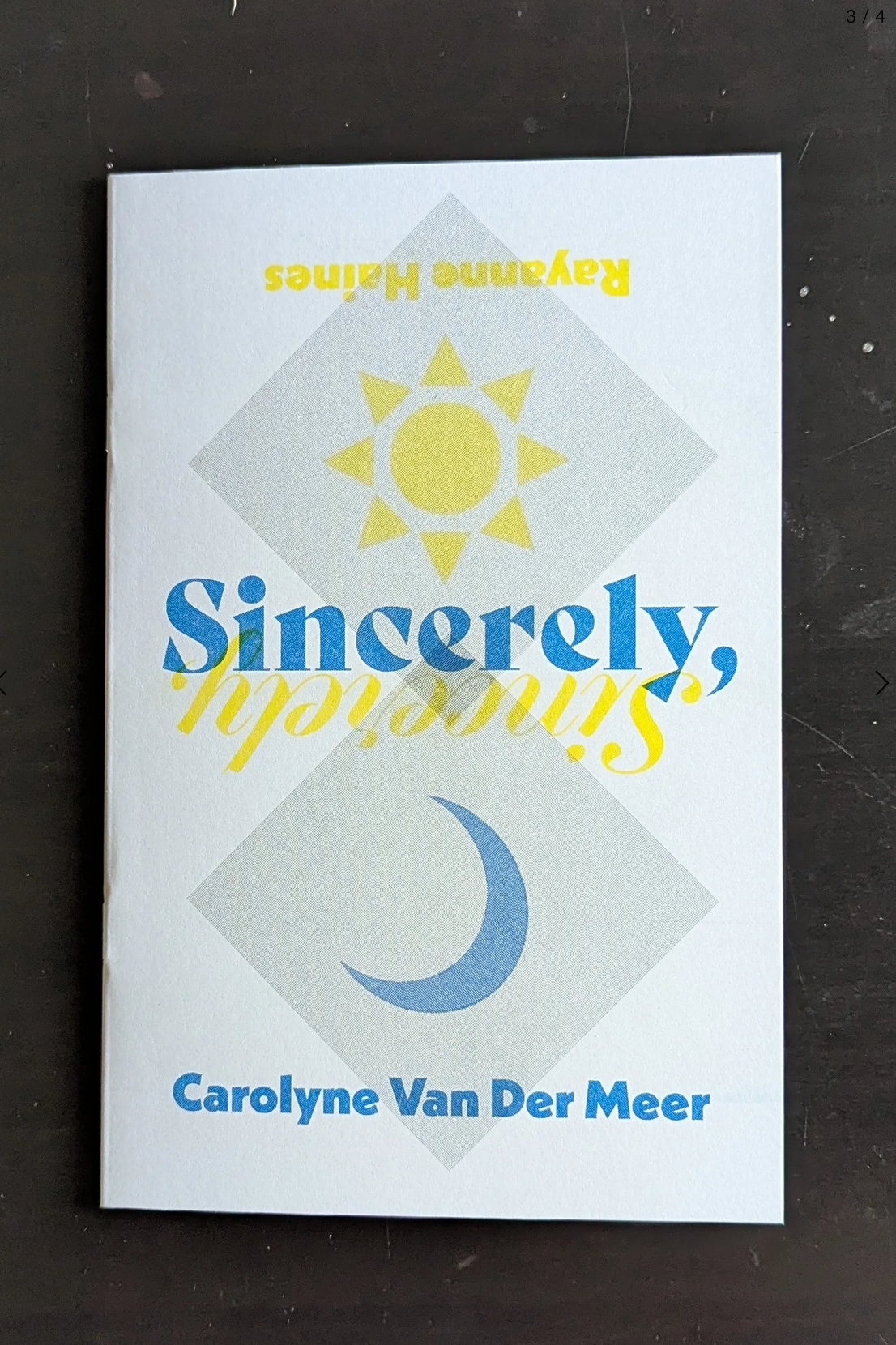 Epistolary Poetry. Printed in a limited numbered edition of 100 copies in layers of blue, yellow, and black ink with a risograph at Rabarbar Press. 20 pages, 5.5” x 8.5”. August 2025.